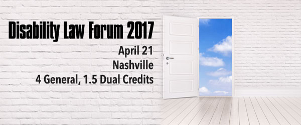 This year's CLE forum will offer a full day of essential and useful material applicable to disability law. Laura Chastain, Ethics Counsel with the Tennessee Board of Professional Responsibility, will present an update on ethics. Further sessions will include an update on 6th Circuit Social Security Case Law, the new mental health regulations effective in January 2017, and updates on the rapid technology-driven changes that are impacting today’s legal market and the modern law practice.