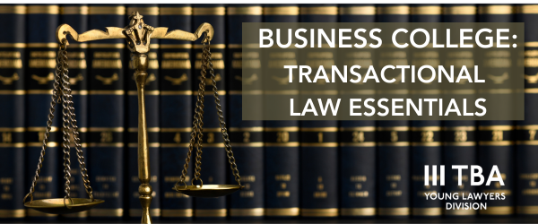 Join us for the inaugural Business College, sponsored by the Tennessee Bar Association's Young Lawyers Division. This in-person program is designed as a practical refresher and foundation course for new and young attorneys — or any lawyer who wants to brush up on the basics of transactional law. Geared toward real-world practice, the program focuses on core concepts, ethical considerations and emerging issues in business law, with hands-on guidance and takeaways attendees can use right away to more confidently and efficiently handle a wide range of business legal matters for their clients. Topics include How to Close the Deal,Business Ethics, Business Formation and Hot Topics.